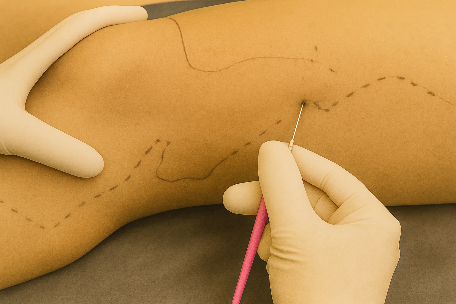 Procedimento minimamente invasivo que remove varizes de pequeno e médio calibre através de microincisões de 1 a 2mm, sem a necessidade de pontos. É seguro, realizado sob anestesia local e permite alta no mesmo dia, com cicatrizes discretas ou imperceptíveis.
